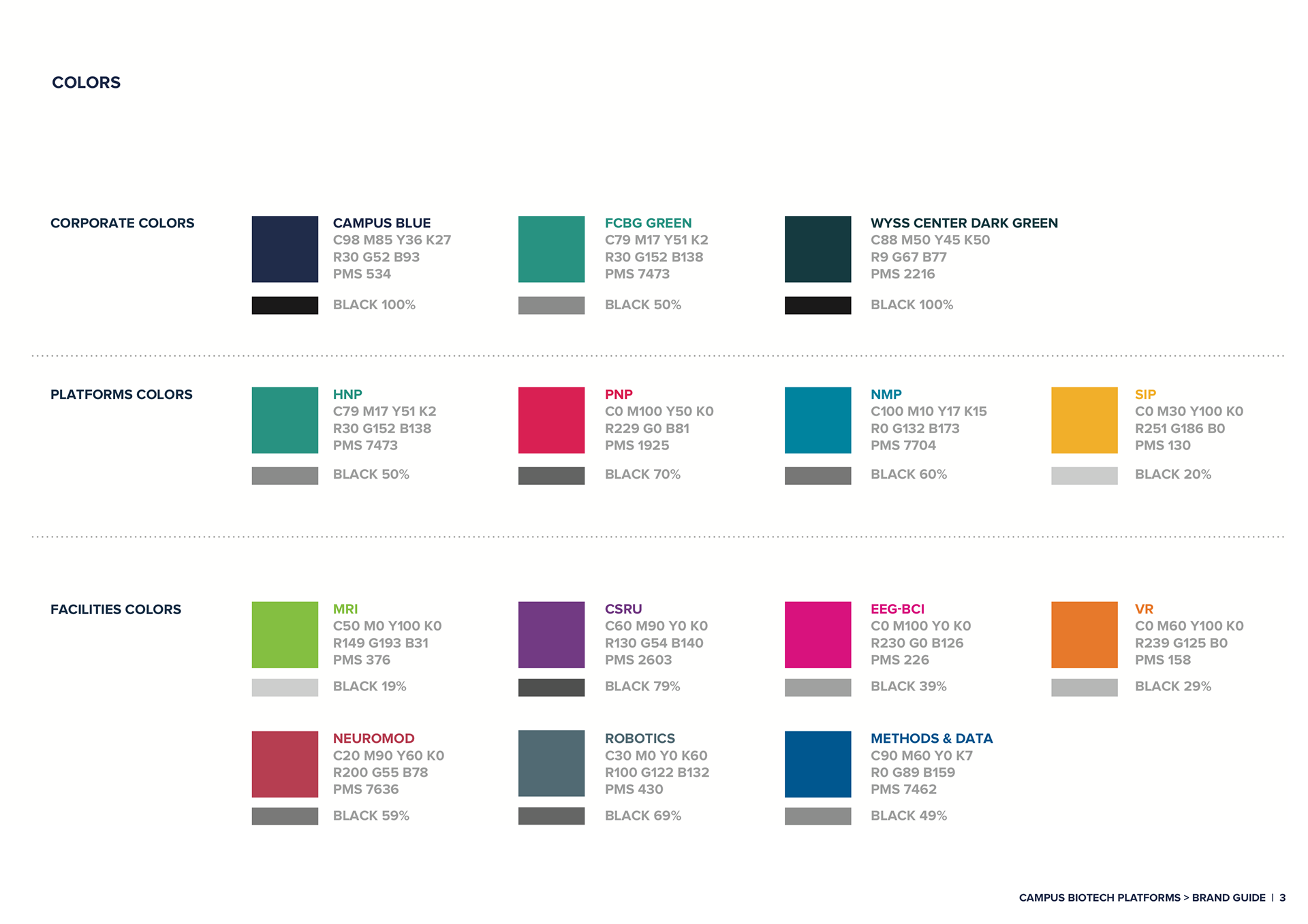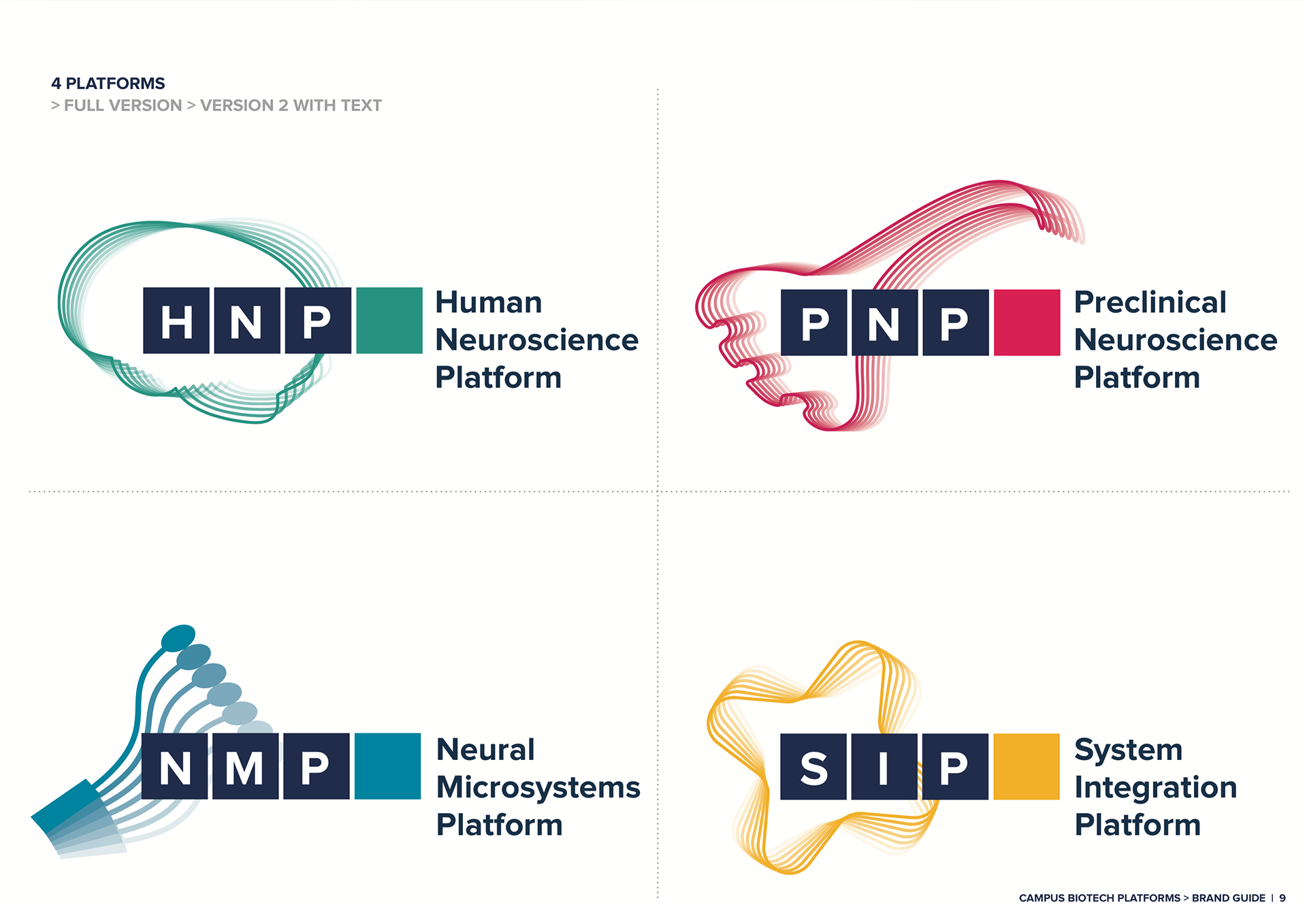 Identité visuelle des plate-formes de recherche du centre genevois accueillant les instituts de recherche et entreprises de biotechnologie.