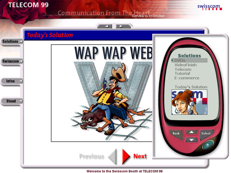 Flash animation for an interactive terminal for Swisscom in 1999 during the World Mobile Congress in Geneva